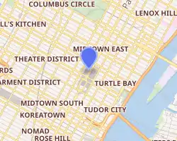 270 Park Avenue was in the Midtown Manhattan neighborhood of New York City. It occupied an entire city block bounded by Madison Avenue to the west, 48th Street to the north, Park Avenue to the east, and 47th Street to the south.[2][3] The land lot covered about 80,000 square feet (7,400 m2) with a frontage of 200 feet (61 m) on either avenue and 400 feet (120 m) on either street.[2][4] Nearby buildings include the old New York Mercantile Library and 400 Madison Avenue to the west; Tower 49 to the northwest; 277 Park Avenue to the east; 245 Park Avenue to the southeast; and 383 Madison Avenue to the south.[2]