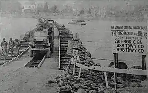 These included the deployment and operation of assault boats and the construction of various pontoon bridges,[7] including M1 treadways, and modular steel truss Bailey bridges.