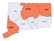 The 2nd Connecticut Regiment was authorized in the Continental Army on 16 September 1776. It was organized between 1 January and April 1777 at Danbury, Connecticut of eight companies from the counties of Fairfield, Windham, and Hartford in the state of Connecticut and assigned on 3 April 1777 to the 1st Connecticut Brigade of the Highlands Department. The regiment was reassigned to McDougall's Brigade on 12 June 1777; then three days later (15 June 1777 it was reassigned to the 2nd Connecticut Brigade. One month later, 10 July 1777 the regiment was reassigned to 1st Connecticut Brigade. On 13 November 1777 the regiment was reassigned to the 2nd Connecticut Brigade of the Main Continental Army. On 1 May 1779 the 2nd Connecticut Brigade was reassigned to the Highlands department and the regiment was re-organized to nine companies on 11 July 1779. The regiment was reassigned to the Main Continental Army on 16 November 1779. It was reassigned to the Highland's department on 27 November 1780. On 1 January 1781 the regiment was merged with 9th Connecticut Regiment, re-organized and re-designated as the 3rd Connecticut Regiment of the 1st Connecticut Brigade. The regiment would see action in the New York Campaign, Battle of Brandywine, Battle of Germantown and the Battle of Monmouth. The regiment was furloughed 15 June 1783 at West Point, New York and disbanded on 15 November 1783.