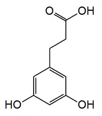 3,5-Dihydroxyphenylpropionoic acid is a metabolite of alkylresorcinols, first identified in human urine[1] and can be quantified in urine[2] and plasma,[3] and may be an alternative, equivalent biomarker of whole grain wheat intake.[4]