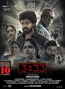 3:33 is a 2021 Indian Tamil-language psychological horror film written and directed by debutant Nambikkai Chandru and produced by Bamboo Trees Productions.[1] The film stars *Sandy, Gautham Vasudev Menon and Shruthi Selvam with a supporting cast including Saravanan, Reshma Pasupuleti, Rama and Mime Gopi.[2][3] The film was released theatrically on 10 December 2021.