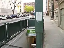 36th Street station is a SEPTA trolley station in Philadelphia.[2] It is located at the intersection of Sansom and 36th Streets, and serves Routes 11, 13, 34, and 36 of the SEPTA subway–surface trolley lines. Trolleys serving this station go eastbound to Center City Philadelphia and westbound to the neighborhoods of Eastwick and Angora, as well as the Delaware County suburbs of Yeadon and Darby.