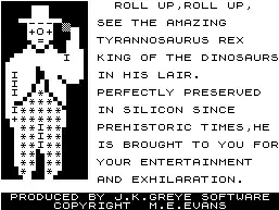 3D Monster Maze was the first game programmed by Malcolm Evans based on a design by J.K.Greye.[10] He worked in the aerospace industry, first in aircraft design, and then as a microprocessor scientist at Sperry Gyroscope in Bristol, United Kingdom. He received a ZX81 from his wife for his thirty-seventh birthday in April 1981. Malcolm developed basic aspects of the game to test what the computer was capable of, and completed it after adding design features suggested by J.K.Greye, including adding the T.Rex and turning the Maze into a game. Friends persuaded Malcolm that the game was of high enough quality to sell and it was eventually released by J.K. Greye Software in late 1981.[11]