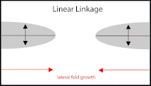 After determining the presence of linkage between twofold segments, it is possible to identify linear linkage between the segments by a straight antiformal saddle in between the two main folds.[5][6] For an en-echelon linkage, the main folds of the segments would be linked by a curved antiformal saddle in between.[5][6]