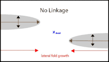 | A continuous cylindrical fold[6] aligning perpendicular to the regional tectonic force that resembles a Type 1 refold structure.[6] It can be confused with a single growing embryonic fold with huge fold axial length | A single continuous cylindrical anticlinal structure with bent fold hinge around the point of linkage, resembling a Type 2 refold structure[6] | Two oppositely plunging parallel anticlinal fold trains and a syncline form[6] |