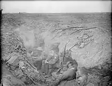 The latter half of the year of 1918 saw the return of the war of movement. The 3rd Guards Brigade had to withstand the German spring offensive in the First Battles of the Somme (1 – 25 March) then switched over to counter-attack in the Second Battles of the Somme (21 – 23 August), the Second Battle of Arras (26 August – 3 September), the Battles of the Hindenburg Line (12 September – 12 October), and in the Final Advance in Picardy including the battles of the Selle and of the Sambre. Its final action was the Capture of Maubeuge on 9 November.[5]