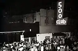 The names of the celebrities who performed at the club were written in cement on the sidewalk in front of it, similar to Grauman's Chinese Theatre.[13] Celebrities often dropped by the club, including Joe DiMaggio, "who had his own table and his own waitress to serve him free drinks".[14] Like other clubs in Atlantic City, the 500 Club was patronized by both whites and African-Americans.[15] Mobsters and politicians were frequent patrons, with the former "making deals" with the latter; these guests were never presented with a bill.[16][17]
