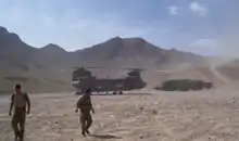 On 30 May 2011, a Chinook from C Squadron crashed while operating in Afghanistan.[9] The aircraft was conducting a re-supply mission in company with a US Army Chinook in Zabul Province when it crashed, injuring six personnel on board. The most seriously wounded, passenger Lieutenant Marcus Case, was evacuated by the accompanying US Army helicopter but later died of his injuries.[9] He was an Australian Army pilot deployed with No. 5 Flight RAAF at Kandahar. The other five injured survived the crash and were evacuated to Kandahar. The helicopter, a CH-47D (ADF serial A15-102) attached to the US Army 159th Combat Aviation Brigade at Kandahar, was assessed as being unrecoverable and was subsequently destroyed at the site of the crash.[10] There was no insurgent activity at the time of the crash, and enemy fire was ruled out as a contributing cause.[11] The eleventh, and final, deployment of Chinooks to Afghanistan was completed on 14 September 2013.[12] In June 2014, all six of the regiment's Chinooks flew together for the first time in 19 years.[13]