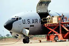 The squadron deployed aircrews and aircraft to support the Spanish, Great Lakes and Alaskan Tanker Task Forces.[25][26][27] It engaged in worldwide operations supporting combat operations in Southeast Asia from 1968 through 1975 through participation in Operation Young Tiger and support for Operation Arc Light.[1][23][28] Afterwards it continued to support forward based tanker task forces.[29] Due to normally supporting the European Tanker Task Force (ETTF) and Pacific Tanker Task Force (PTTF) simultaneously along with home operations, it adopted the slogan "The sun never sets on the 906th". It supported combat operations in Southwest Asia from 1990 through 1991.[1]