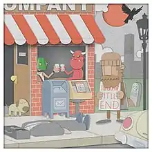 The album art contains a visual element for each track. For example, the Newsweek stand is a reference to a lyric in "Me and Julio Down by the Schoolyard" and the gravestone marked "Willie" is a reference to the antagonist in "The Troubadour".