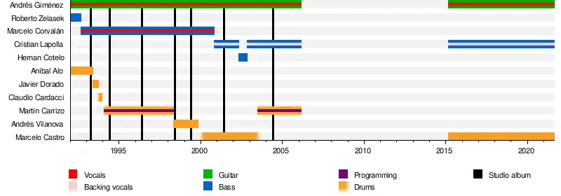 | Past members | Marcelo "Corvata" Corvalán Andrés Vilanova Martín Carrizo Aníbal Alo Hernán Cotelo Javier Dorado |