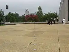 Michelson died in Pasadena, California, at the age of 78.[21] The University of Chicago Residence Halls remembered Michelson and his achievements by dedicating 'Michelson House' in his honor. Case Western Reserve has dedicated a Michelson House to him, and Michelson Hall (an academic building of science classrooms, laboratories and offices) at the United States Naval Academy also bears his name. Michelson Laboratory at Naval Air Weapons Station China Lake in Ridgecrest, California, is named for him. There is a display in the publicly accessible area of the Lab which includes facsimiles of Michelson's Nobel Prize medal, the prize document, and examples of his diffraction gratings. In 2017, a newly renovated physics research center at the University of Chicago was renamed in honor of Michelson as well.[22]