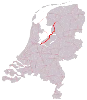 The A6 motorway, of which the largest part is located in the province of Flevoland, is the shortest route between the city of Amsterdam and most parts of the northern provinces of Friesland and Groningen.