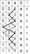 3-bit Gray code visualized as a traversal of vertices of a cube (0,1,3,2,6,7,5,4):[1] 3-bit Gray code visualized as a traversal of vertices of a cube (0,1,3,2,6,7,5,4):[1]- ABACABA