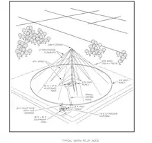 The overall area of a GWEN Relay Node was approximately 11 acres (4.5 ha), approximately 700 feet (210 m) × 700 feet. It was surrounded on the perimeter by locked, 8-foot-high (2.4 m) chain-link fences topped with barbed wire. Typical site features included:[1]