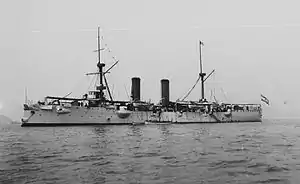 Nueve de Julio was designed by Philip Watts and was one of a series of fast protected cruisers built by Armstrong (Elswick, England) for export.[1] The ship was a second-class protected cruiser with quick-firing guns, in contrast to Argentina's previous "Elswick" ship Veinticinco de Mayo which on a similar size hull mounted 8.2-inch (208 mm) main guns. Nueve de Julio was therefore similar to its predecessor Piemonte built for Italy, the first cruiser with an all-quick firing armament, and the following Elswick cruiser Yoshino built for Japan, which was the fastest ship in the First Sino-Japanese War and performed well in action.