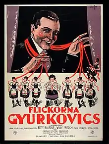 A Sister of Six (German title: Die sieben Töchter der Frau Gyurkovics, Swedish title: Flickorna Gyurkovics) is a 1926 silent romantic comedy film directed by Ragnar Hyltén-Cavallius and starring Willy Fritsch, Betty Balfour and Lydia Potechina.[1] It was a co-production between Germany, Sweden and the United Kingdom. It was shot at the Tempelhof Studios in Berlin. The film's sets were designed by the Swedish art director Vilhelm Bryde.