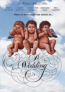 A Wedding is a 1978 American satirical comedy-drama film directed by Robert Altman, with an ensemble cast that includes Desi Arnaz, Jr., Carol Burnett, Paul Dooley, Vittorio Gassman, Mia Farrow, Lillian Gish, Geraldine Chaplin, Howard Duff, Nina Van Pallandt, Amy Stryker, and Pat McCormick.[2] The story is told in typical Altman style, with multiple plots and overlapping humorous dialogue.