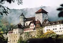 The Galgen or ruins of the Froburg built gallows,[15] the Gasthof (combination hotel and restaurant) alte Post (former noble's house) at Städtchen 5 and the Castle are listed as Swiss heritage sites of national significance.[16] The entire village of Aarburg is designated as part of the Inventory of Swiss Heritage Sites.[17]