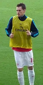 On 22 August 2009, Ramsey scored his first league goal in a one-on-one against goalkeeper David James as Arsenal beat Portsmouth 4–1[30] at Emirates Stadium and then set up Andrey Arshavin in a 3–1 home win over Celtic in the Champions League play-offs.[31] In the League Cup fourth round win against Liverpool, on 28 October, he produced an impressive performance and set up Nicklas Bendtner earning himself the man of the match award.[32]