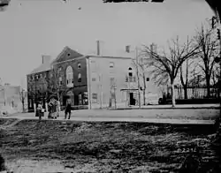 In late December, 1861, the elder Van Camp was imprisoned as a suspected spy in downtown Washington in the Old Capitol Prison. Van Camp was released from custody on parole in March 1862[13] after signing an oath of allegiance to the Union.[14]