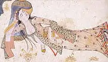 Levnî began his work in Istanbul during Sultan Mustafa II's rule and eventually became chief painter at the palace atelier.[2] During his stay at the palace, he specialized in the Saz style, which is characterized by stylized leaf designs.[2] In spite of his high artist status, his name does not appear on a lists of artists working for the palace during his time.[2] However, his signed artworks and influence on subsequent artists are evidence that he was an important artist of his time.[2] Levnî died in Istanbul during the early 18th century.[1]