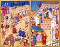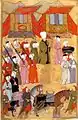 The Surname-i Vebbi is a ceremony book containing a series of miniatures depicting scenes from the circumcision of the sons of the Sultan in 1720.[3] The event was celebrated for fifteen days and fifteen nights and involved a courtly processions. Levnî was commissioned by Seyyd Hüseyin Vehbi to record the event in manuscript form.[3] The miniatures in the Surname-i Vebbi are elaborate , capturing varying angles of movement in a wide range of colors and shapes.[3] There is also evidence of the Persian influence in the paintings some examples of which are the cultural objects in the background and the attire of some of the figures.[1][3]