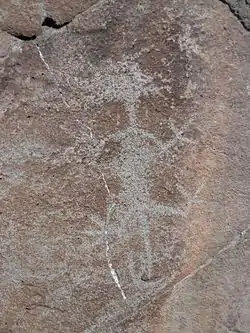 The Abert Lake Petroglyphs (Smithsonian trinomial: 35LK475[3]) are a prehistoric archaeological site in Lake County, Oregon, United States. Peoples of the Great Basin cultural tradition pecked the images onto two basaltic boulders near major game migration routes. They are believed to be connected with rituals related to hunting activities, and contribute to the larger understanding of subsistence patterns in the northern Great Basin. They were made within the last 10,000 years, but their age cannot be stated more precisely due to the difficulty of dating petroglyphs.[2]