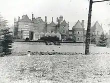 The foundations of the hall were laid in 1842[2] on the site of Cheadle Grove Print Works, which had been built in 1760 and which later burned down; the hall was completed in 1847 but remodelled in the 1850s and considerably extended in the 1890s. It was originally called 'The Grove' after the print works and was going to have been the home of a mayor of Stockport, Alfred Orell, but he died in the year of its completion. The house and the associated estate (gardens and farmland) were sold to James Watts (later Sir James Watts) who rebuilt the upper storey and added two short wings in the early 1850s. The architects for the alterations were Travis and Magnall, the Manchester firm which also designed the Watts Warehouse on Portland Street in Manchester. However, hardly was the work by Travis and Magnall complete, when James Watts was inspired to engage the architect and designer A. W. N. Pugin and his colleagues, who had created the Gothic Court at the 1851 Great Exhibition in the Crystal Palace, to make further substantial alterations.