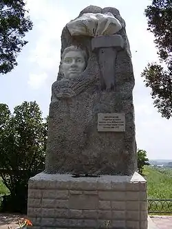 After the end of World War II, Abram Pinkenson became widely known through articles in the Soviet press and radio. In particular, an article describing his deeds and heroic death was published in the newspaper Pravda in 1945.[2] It was picked up not only in many parts of the Soviet Union, but also in Europe and America. At the place of the execution of the young violinist, an obelisk was erected.[3] It was replaced by a concrete monument in the late 1970s.[4]