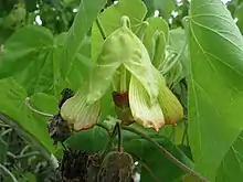 Abutilon sandwicense, commonly known as the greenflower Indian mallow, is a species of flowering plant in the mallow family, Malvaceae, that is endemic to the island of Oʻahu, Hawaii, in the United States.[2] It inhabits dry forests on the slopes of the Waiʻanae Range at elevations of 400–600 m (1,300–2,000 ft). Associated plants include lama (Diospyros sandwicensis), ēlama (D. hillebrandii), māmaki (Pipturus albidus), kalia (Elaeocarpus bifidus), āulu (Sapindus oahuensis), olopua (Nestegis sandwicensis), and alaheʻe (Psydrax odorata). Greenflower Indian mallow is a shrub, reaching a height of 1.5–3 m (4.9–9.8 ft).[3] It is threatened by habitat loss.