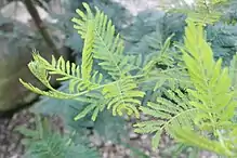 Acacia dealbata, the silver wattle, blue wattle[3] or mimosa,[4] is a species of flowering plant in the legume family Fabaceae, native to southeastern Australia in New South Wales, Victoria, Tasmania, and the Australian Capital Territory and widely introduced in Mediterranean, warm temperate, and highland tropical landscapes.[5][6]