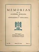 The Academia Mexicana de Genealogía y Heráldica published a series of Memorias through two periods: 8 volumes on the first one (1945–57);[1][21][22][23][24][25][26][27][28] having published 17 volumes from 1957 until 2005.[3][29][30][31][32]