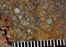 Chondrules, metal grains, and other components likely formed in the solar nebula. These accreted together to form parent asteroids. Some of these bodies subsequently melted, forming metallic cores and olivine-rich mantles; others were aqueously altered.[34] After the asteroids had cooled, they were eroded by impacts for 4.5 billion years, or disrupted.[35]