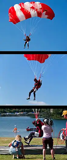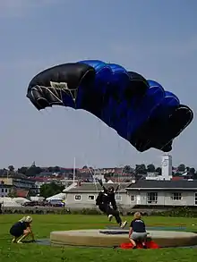 Accuracy landing is one of the oldest skydiving disciplines, in which skydivers attempt to land as closely as possible to a pre-determined target.[1]