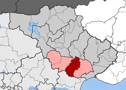 Achinos (Greek: Αχινός) is a village and a former municipality in the Serres regional unit, Greece. Since the 2011 local government reform it is part of the municipality Visaltia, of which it is a municipal unit.[2] The municipal unit has an area of 155.432 km2.[3] Population 2,427 (2011). The seat of the municipality was in Sitochori. Other communities in the municipal unit are Dafni, Zervochori, Lefkotopos, Patrikio and Choumniko. The name Achinos is the Greek word for sea urchins.