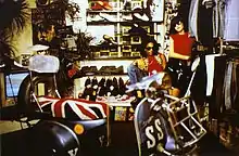 Acme Attractions[4][5] was inspired by Malcolm McLaren and Vivienne Westwood's Fifties-inspired boutique Let it Rock (revamped in 1972 and renamed Too Fast To Live Too Young To Die). In spring 1974, a radical change saw the shop become Sex: selling fetish wear and Westwood's innovative designs.[6] Acme's owner, John Krivine, decided to venture into clothing with Steph Raynor.[7] In 1974, Acme Attractions initially opened as a stall in the antiques market Antiquarius on the King's Road, Chelsea.[8][9] While it was owned by Krivine and Raynor its public face was Don Letts who says that Acme was selling, "electric-blue zoot suits and jukeboxes, and pumping dub reggae all day long".[3][10] Acme would actually have to move to the basement, after complaints about Don Letts's pounding dub reggae.[11]