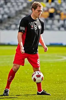 ![]() Hughes warming up for Adelaide United in 2010 | |||