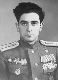 Adil Guseyn oglu Guliyev (Azerbaijani: Adil Hüseyn oğlu Quliyev, Russian: Адиль Гусейн оглы Кулиев; 22 November 1922–16 December 1992) was an Azerbaijani fighter pilot in the Soviet Air Force who became a flying ace with twenty shootdowns during the Second World War. A recipient of the title Hero of the Soviet Union for his feats, he remained in the Soviet Air Force and retired with the rank of colonel in 1966. Later he became a director of Baku Airport.[1]