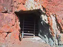 An adit (from Latin aditus, entrance)[1] is an entrance to an underground mine which is horizontal or nearly horizontal,[2] by which the mine can be entered, drained of water,[3] ventilated, and minerals extracted at the lowest convenient level.[1] Adits are also used to explore for mineral veins.[1]