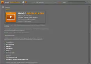 Adobe Media Player is a discontinued desktop media player that allowed users to manage and interact with their media content, and allowed content publishers to define branding and advertising in and around their content. The Adobe Media Player was one of the first Adobe AIR applications from Adobe Systems. It was announced at NAB show in Las Vegas and was released in April 2008.[1] It used DRM and enforces advertisement viewing, when watching videos both online and offline.