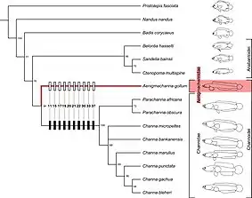 In 2020, Aenigmachanna was placed in its own monotypic family, the Aenigmachannidae, or the dragon snakeheads.[2][6]