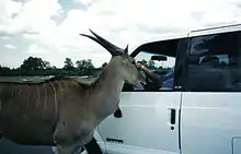 On any of the seven reserves, visitors are caged in their car and the animals roam in large enclosures that range from 2 to 20 hectares (4.9 to 49.4 acres).[1]