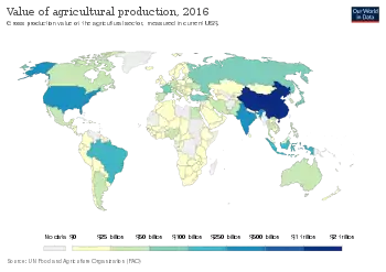 | Largest countries by agricultural output (in nominal terms) according to IMF and CIA World Factbook, at peak level as of 2018 | ||||||||||||||||||||||||||||||||||||||||||||||||||||||