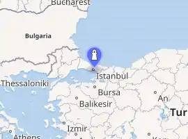 The Ahırkap Feneri, a historical lighthouse still in use, is located at the southern Seraglio Point on the Rumelian coast of Bosporus' south entrance, in Ahırkapı neighborhood of Istanbul's Fatih district, Turkey.[1] It is across from the Kadıköy İnciburnu Feneri, which is on the Anatolian coast of the strait at a distance of 1.5 nmi (2.8 km). A line connecting the two lighthouses marks the southern boundary of the Port of Istanbul.[3]