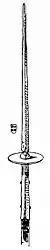 The ahlspiess (or awl pike) was a thrusting spear developed and used primarily in Germany and Austria from the 15th to 16th centuries. The ahlspiess consisted of a long thin spike of square cross section measuring up to about a metre (39 inches) in length, mounted on a round wooden shaft and sometimes secured with a pair of langets extending from the socket. The length of the shaft ranged from 1.6 to 1.8 m. (5 - 6 feet), and located at the base of the spike was a rondel guard (a circular metal plate) to protect the hands. Large numbers of these weapons have survived and are kept in the arsenal and museums of Vienna as well as the Metropolitan Museum of Art.