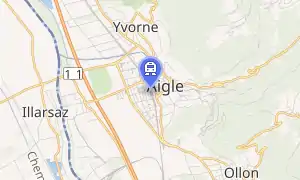 Aigle railway station (French: Gare de Aigle) is a railway station in the municipality of Aigle, in the Swiss canton of Vaud. It is an intermediate stop on the standard gauge Simplon line of Swiss Federal Railways and the terminus of three 1,000 mm (3 ft 3+3⁄8 in) gauge lines operated by Transports Publics du Chablais: the Aigle–Leysin, Aigle–Ollon–Monthey–Champéry, and Aigle–Sépey–Diablerets lines.[1]