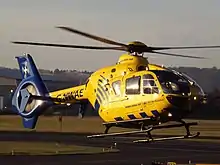 Emergency air ambulances are generally helicopter based, and used to respond to medical emergencies in support of local ambulance services. In England, Wales, and Northern Ireland, all of these services are charitably funded, and either directly owned by the charity, or operated under contract with a private provider.[1] The ambulance staff and doctors crewing these flights are generally seconded from the local NHS ambulance service and NHS hospitals. In Scotland, there is the only publicly-funded air ambulance service, with the Scottish Ambulance Service operating two Airbus Helicopters H145 helicopters and two fixed wing aircraft in this role, alongside two charity-funded Eurocopter EC135 helicopters, operated by Scotland's Charity Air Ambulance.