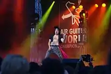 One of the first air guitar contests was held at Florida State University in 1978.[4] The term "air guitar" subsequently gained popularity in the 1980s as more contests were held in Sweden and the United States. Since 1996, the annual Air Guitar World Championships have been organized in Oulu, Finland. The first competitions were arranged as part of Oulu Music Video Festival. Since 2011 it has been produced by Airnest Productions Ltd, which also administers the official Air Guitar World Championships Network of licensed national championships.[5] The idea of the contest was originated a joke that was intended to be a side attraction for the music video festival but has since become a major draw in its own right.[6]