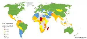 Forty-five million Iranians face inadequate nutrition according to Iranian officials.[9] Kohgiloyeh and Boyerahmad, Sistan-Baluchistan, Hormozgan, Kerman and Khuzestan as provinces that face malnutrition or food insecurity.[9]